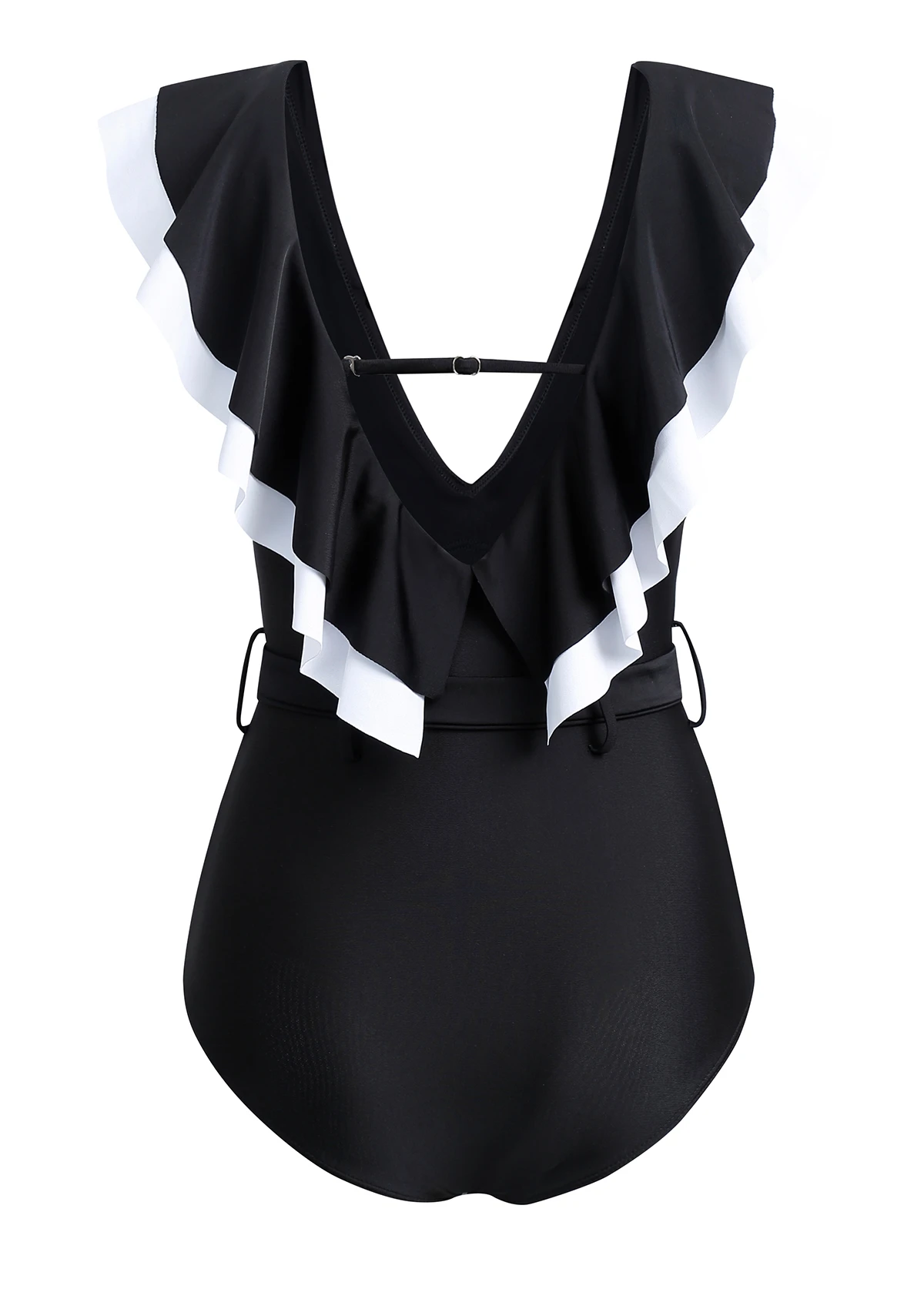 Flounce Buckle Detail Black One Piece Swimwear