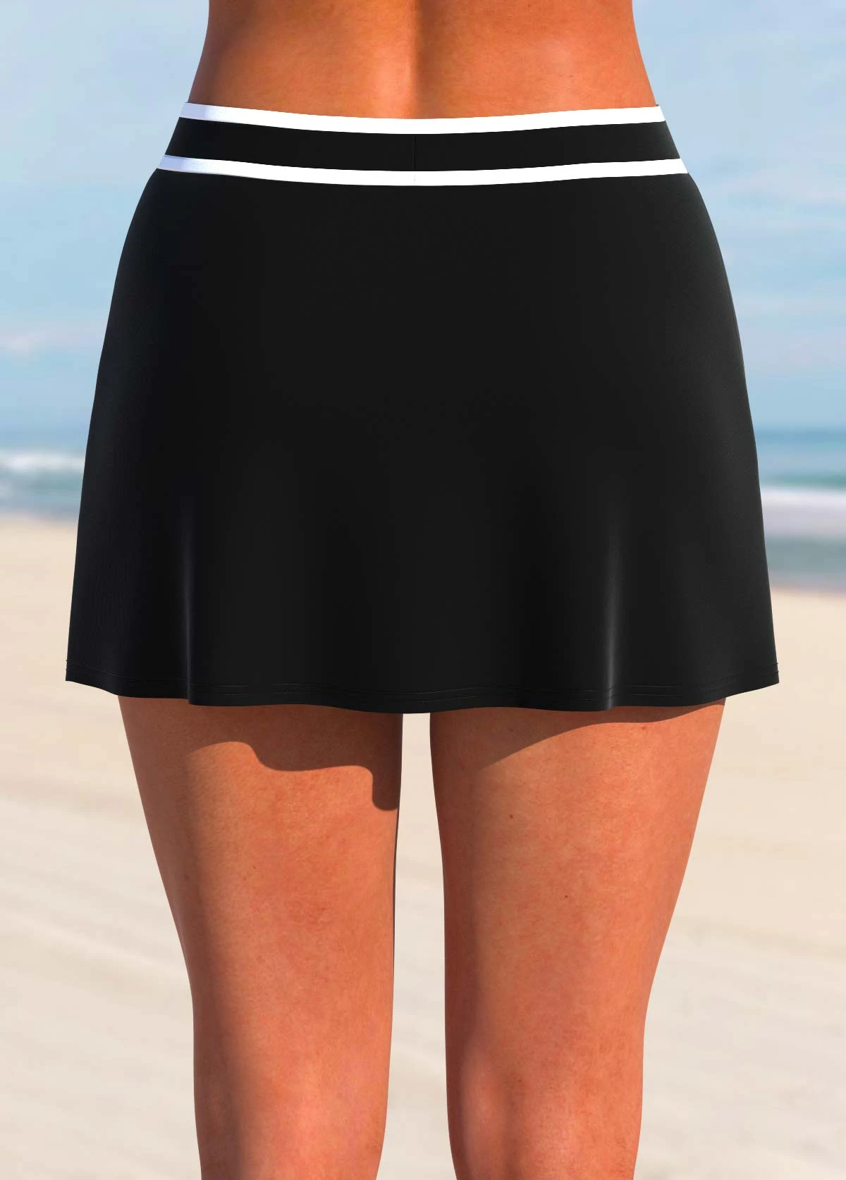 Mid Waisted Black Zipper Contrast Stitching Pantskirt