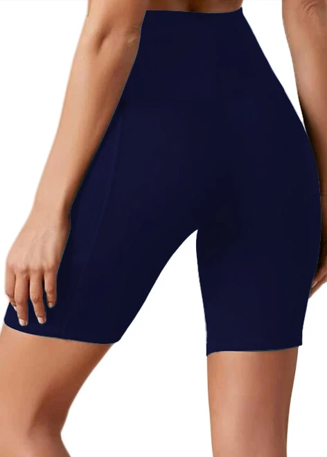 Pocket Detail Navy Blue High Waisted Swim Shorts